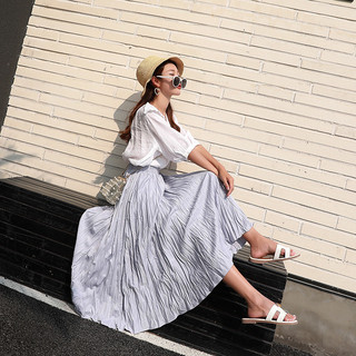 小白裙很仙的纯色褶皱黑色半身裙过膝复古长款遮小腿垂坠感到脚踝